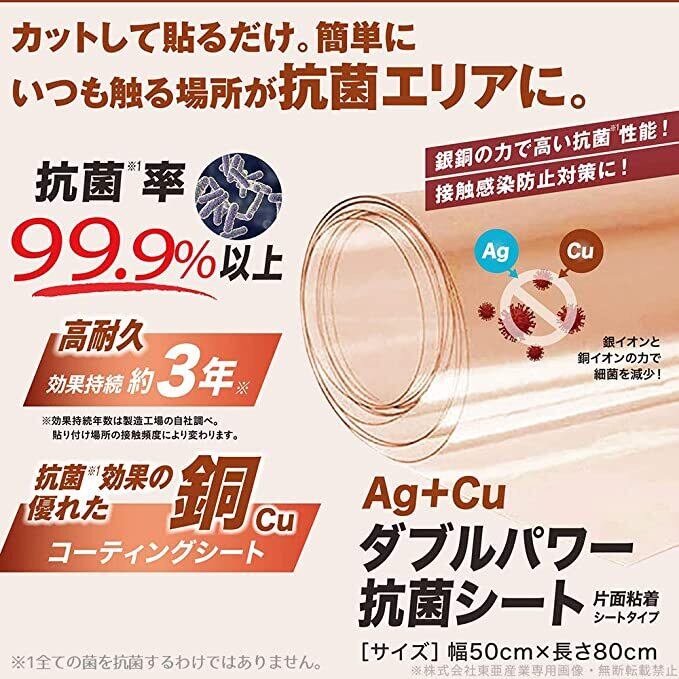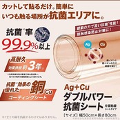 コーティングシート 銀+銅イオン 抗菌率99.9%以上 Ag+Cu 高耐久 透明シート 幅50cm×長さ80cm カットして貼るだけ 3年間 効果持続 ◇ ダブルパワー抗菌シート
